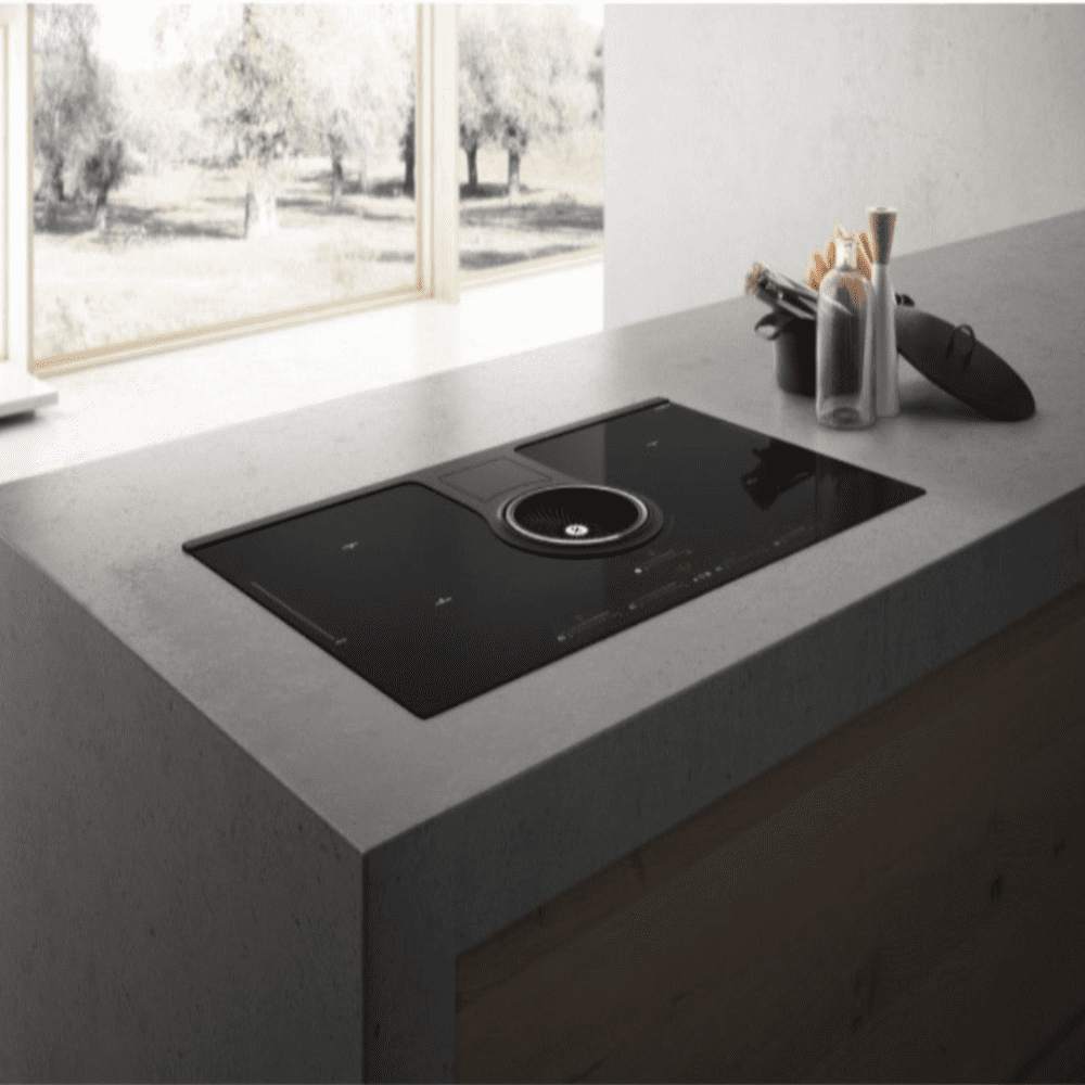 The Elica NikolaTesla One NT-DO is a sleek, frameless induction hob featuring a stylish black glass surface with a central duct cover. Designed for both functionality and elegance, it seamlessly integrates into your kitchen, providing efficient cooking and air filtration with a modern, minimalist aesthetic.