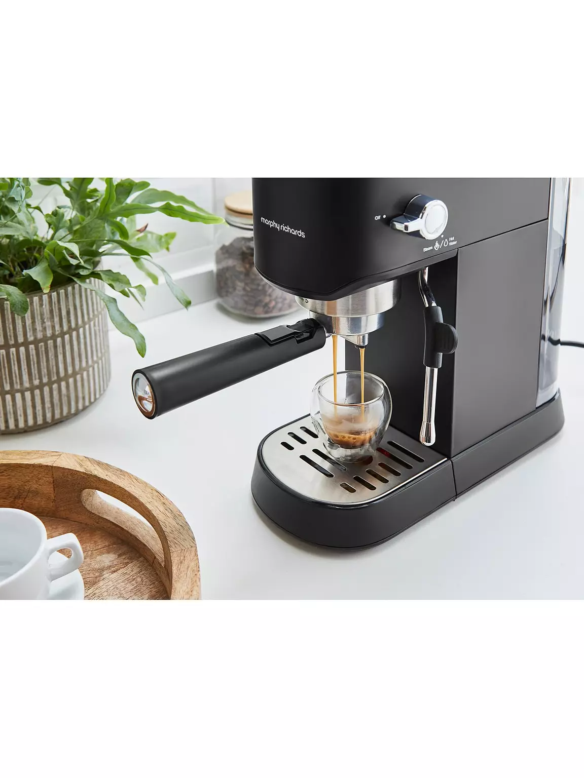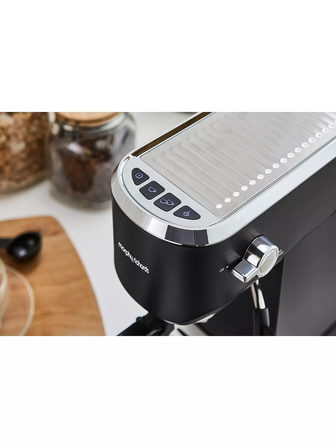 The Morphy Richards Signature Coffee Machine is a standout in the world of ground coffee brewing, expertly combining size with functionality for those who have limited counter space but refuse to compromise on quality. This coffee maker is a pivotal part of the Morphy Richards espresso machine line-up and includes a built-in milk frother that expertly combines steam, air, and milk to produce a deliciously creamy froth for your coffee. Despite its compact size, it delivers the power and performance of the best espresso machines, ensuring a rich and robust espresso with each use. This espresso coffee machine is a testament to Morphy Richards’ commitment to providing high-quality coffee experiences, tailored to fit even the smallest of kitchen spaces. Additional features such as the removable 1 litre water tank and drip tray allow for easy maintenance and cleaning. Not to mention, the dual cup dispenser offers the ability to pour multiple beverages at once making it the perfect choice for a busy household who need their morning coffee fix! So, what are you waiting for? Grab yourself a brand-new espresso machine and indulge in delicious coffee every morning.