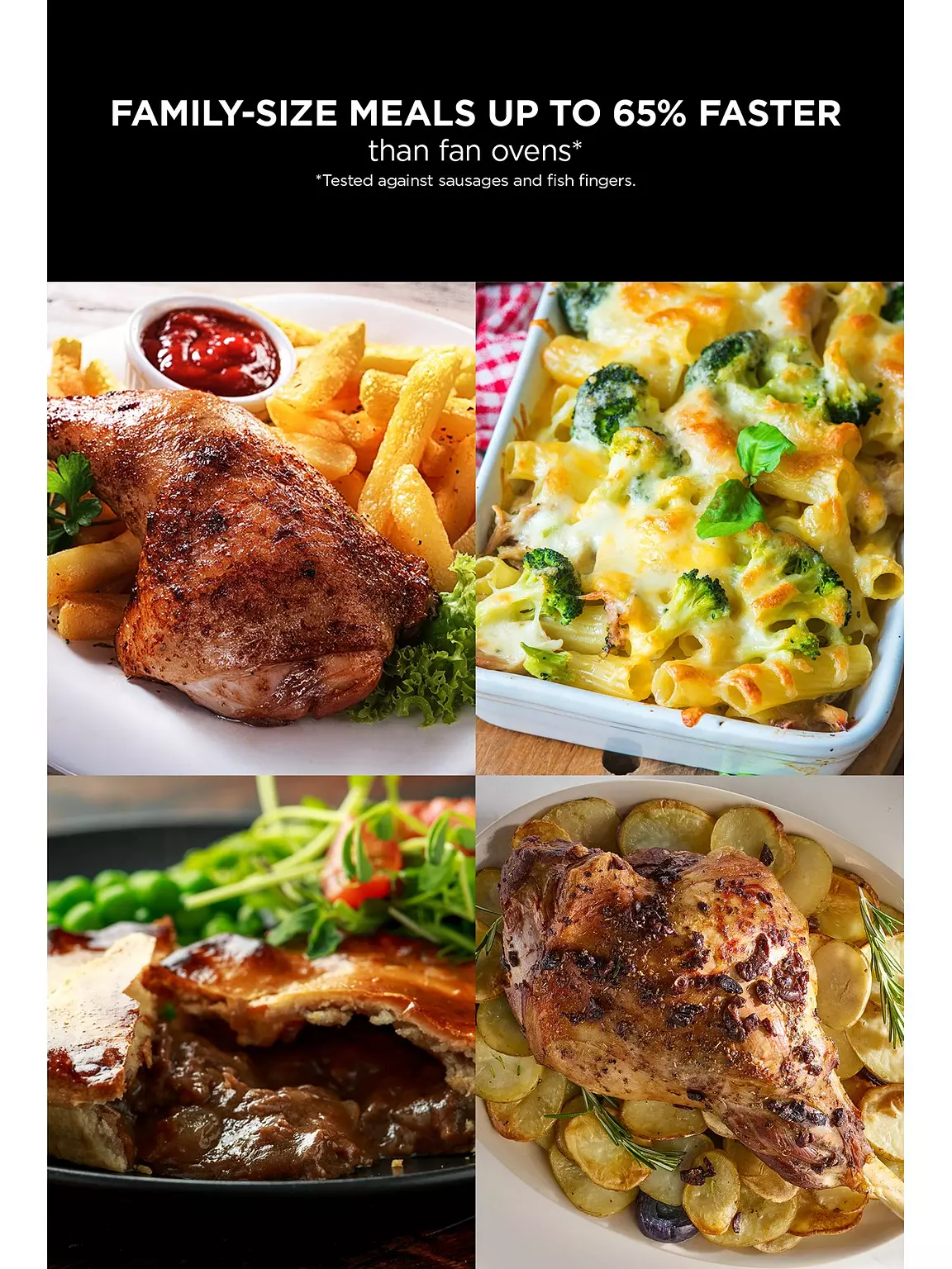 Up to 75% faster than fan ovens* – perfect for feeding a large household, entertaining, or just cooking enough for yourself!