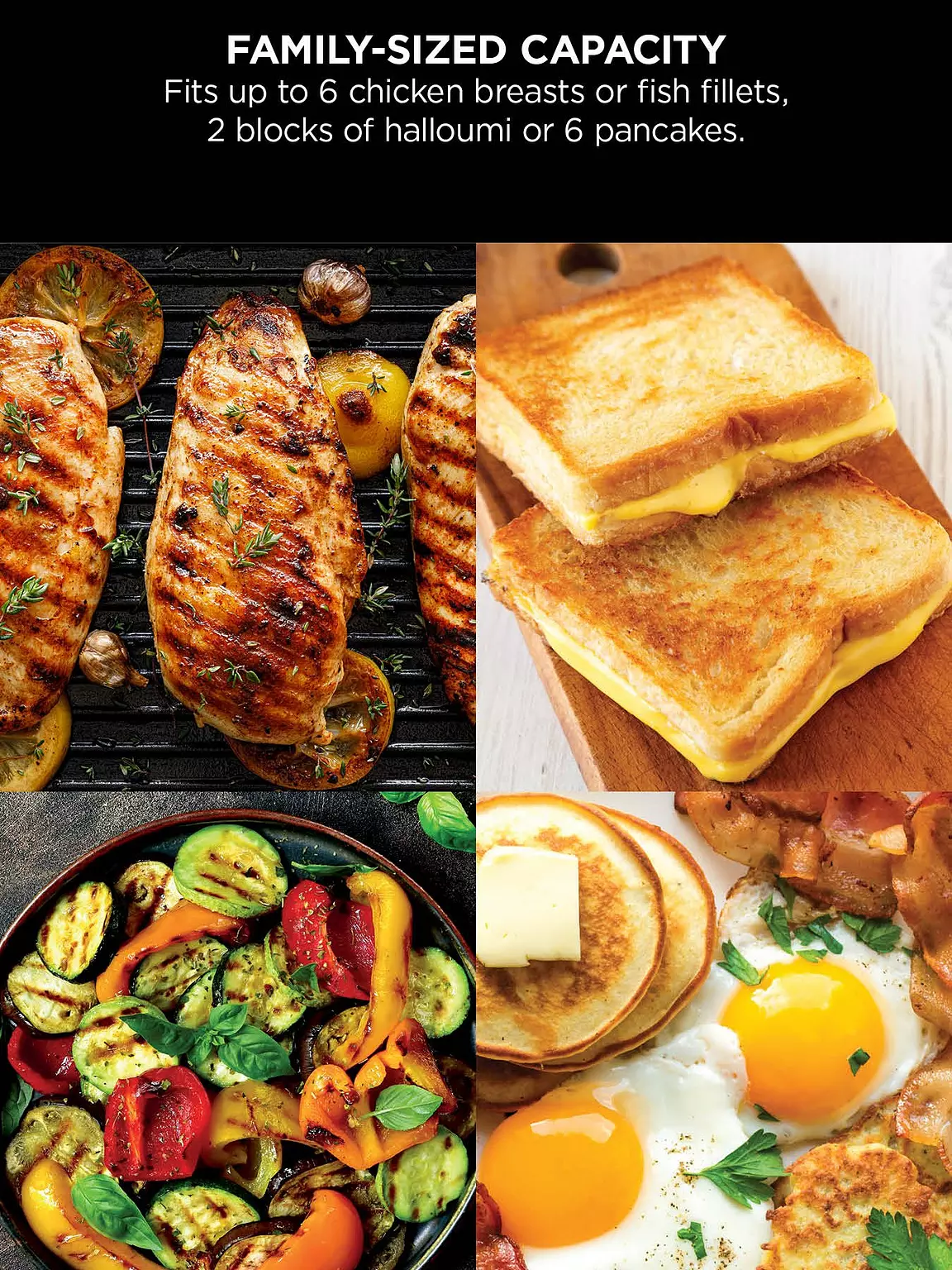 With the lid up, you can give food a blast of concentrated heat for authentic chargrilled flavours and a perfect sear. Drop the lid to retain heat and melt toppings – perfect for a bubbling grilled cheese or loaded nachos.