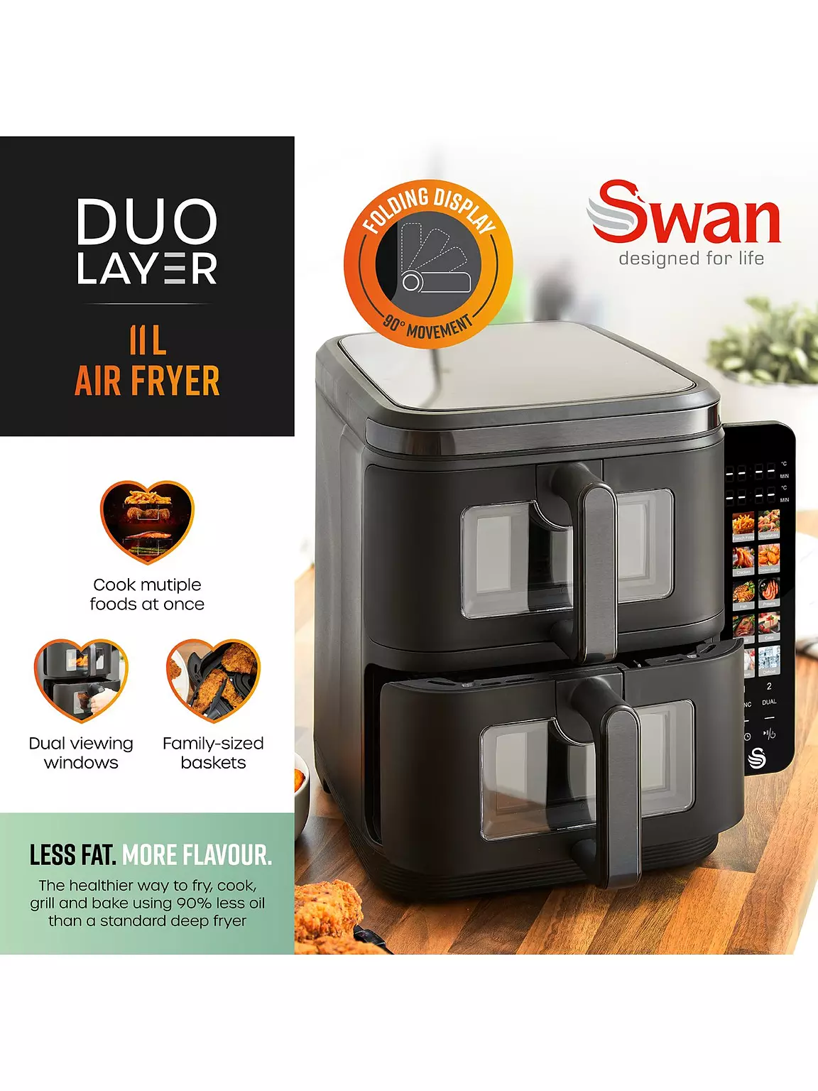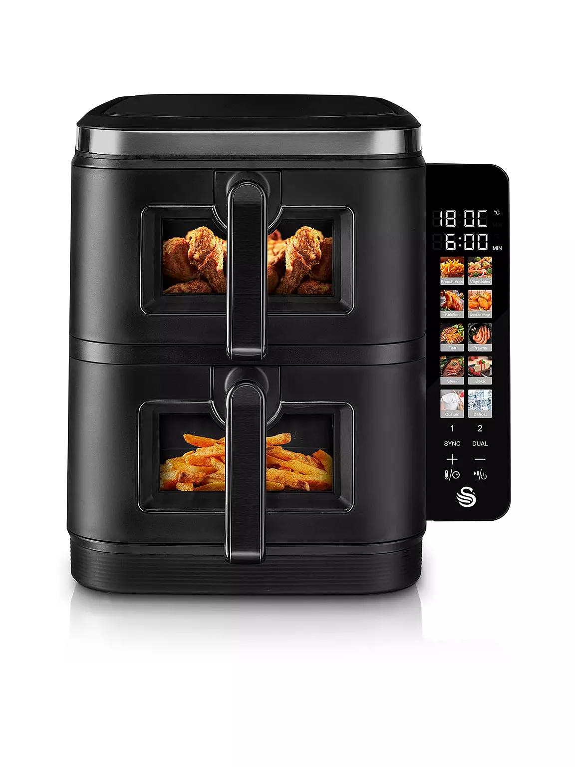 Swan SD10522BLK 11L Twin Stack Air Fryer – ideal for feeding up to 8 people without taking up too much space.