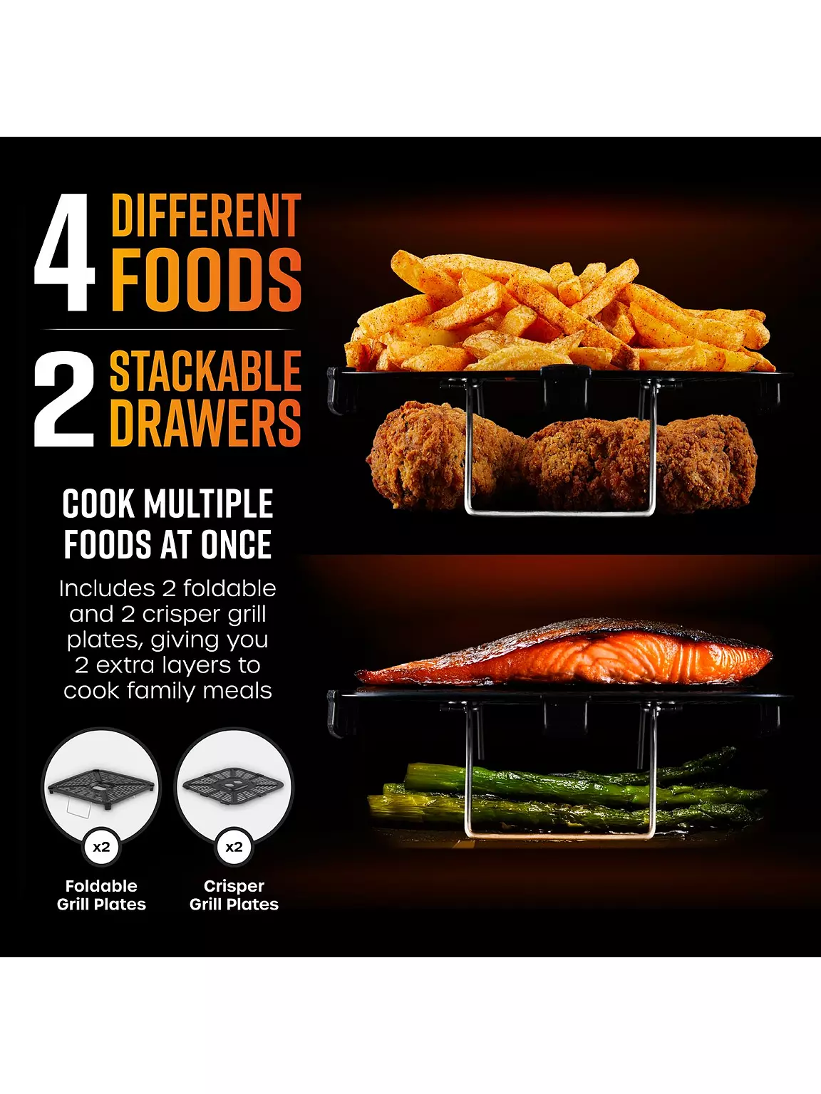 - What’s in the Box: Instruction Manual, Duo Layer 11L Air Fryer, 2x Removable Crisper Grill Plate, 2x Removable Foldable Crisper Grill Plate