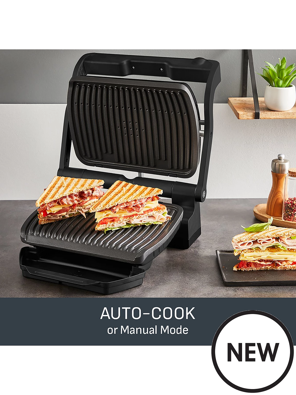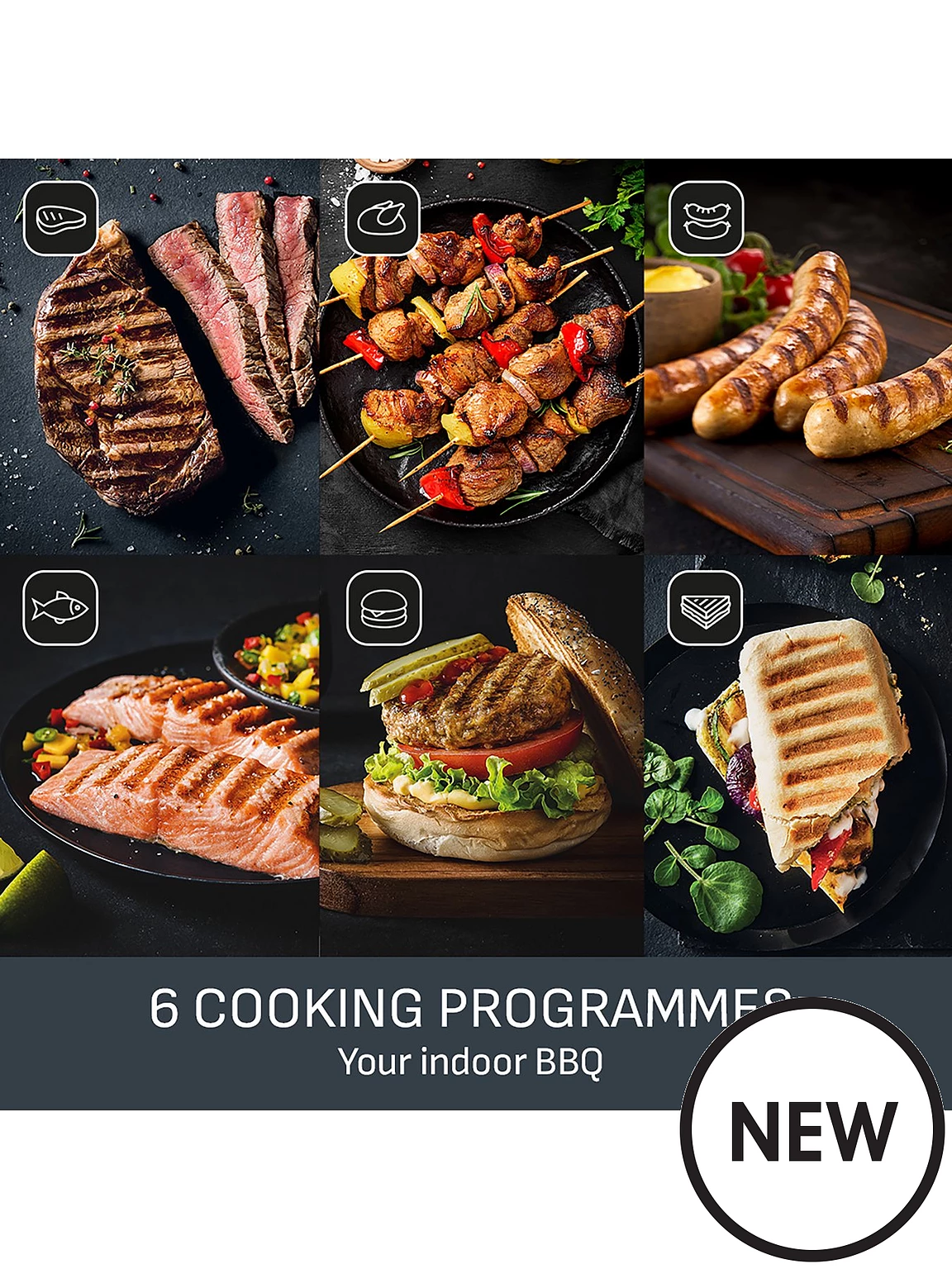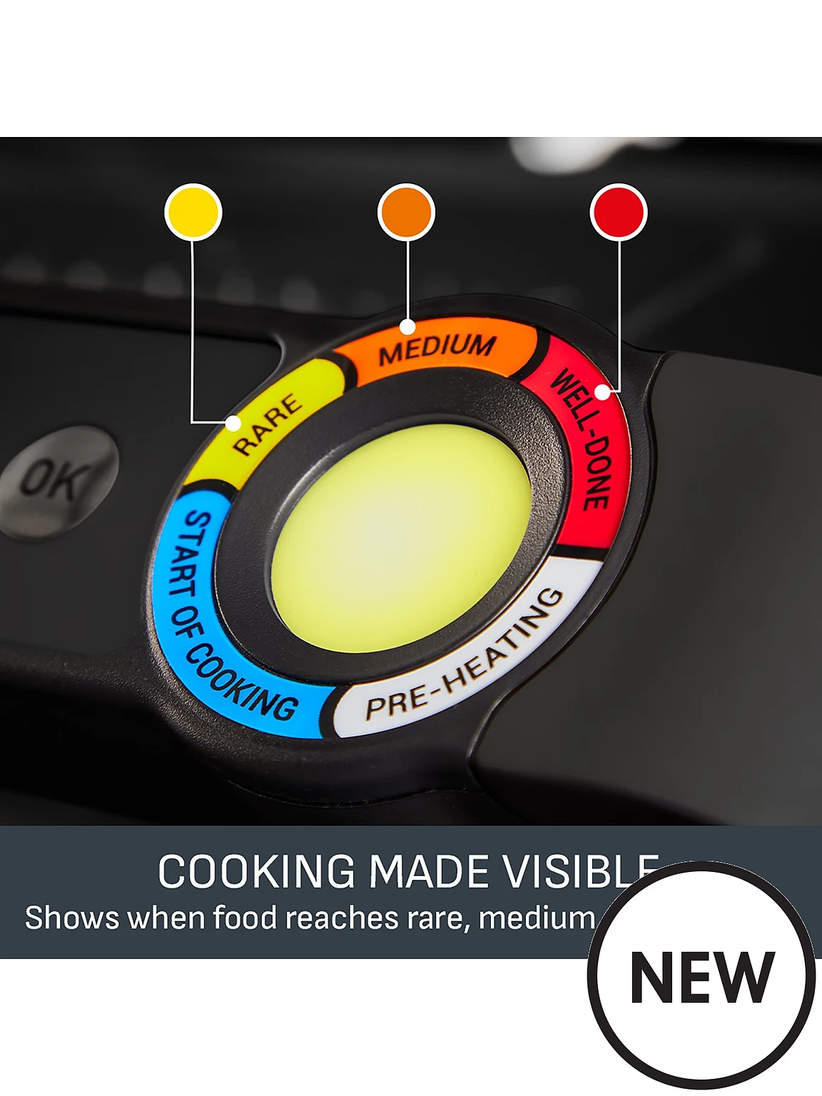 - Intelligent grill that automatically adjusts the cooking time to deliver perfect grilling results, from rare to well-done