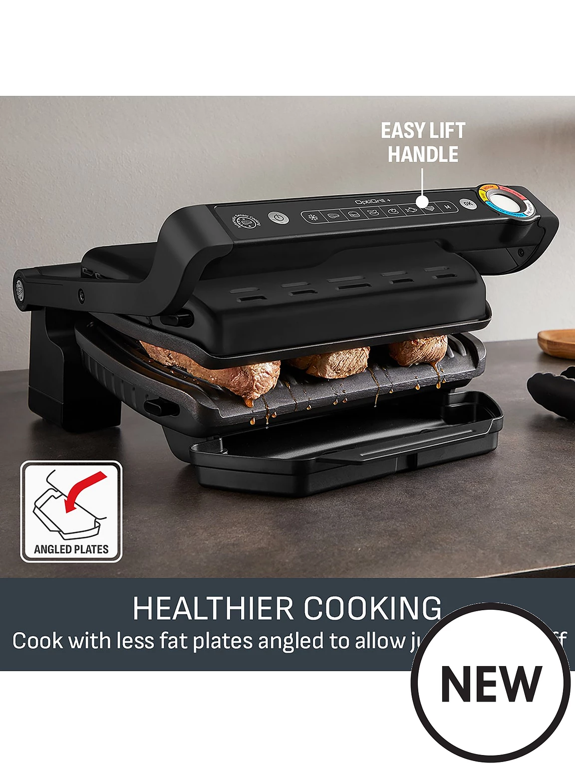 OptiGrill+ promises perfect grilling results every time. With its exclusive technology, this intelligent contact grill measures the thickness of your meat, fish or sandwiches down to the millimeter, accounts for the number of pieces, and automatically adjusts the cooking time to deliver perfect results without fail. Along with six automatic cooking programs and angled plates that help drain away fat, OptiGrill+ puts a variety of delicious and healthy meals within reach. And with up to 2x less smoke than a standard grill, it’s perfect for indoor use!