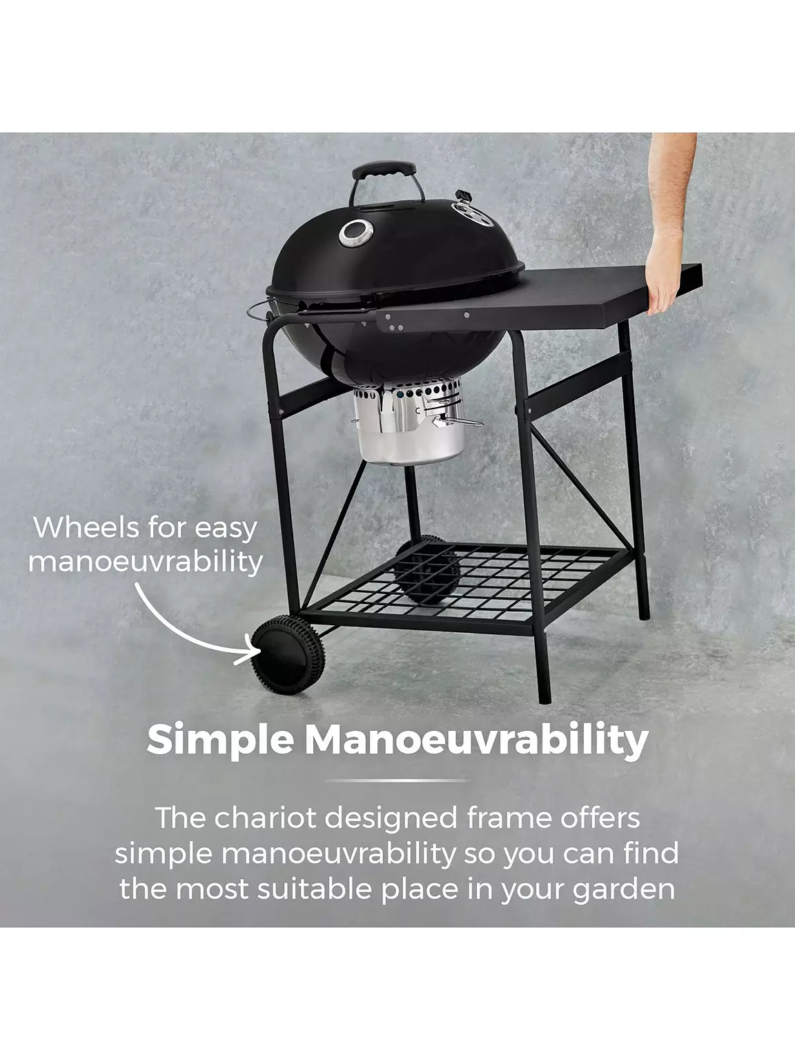 Wheels on the base of the BBQ contribute to the chariot design, offering easy manoeuvrability so you can pick the best spot in your garden to start cooking.